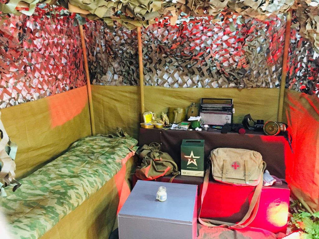 Дизайн музея был разработан совместно с заслуженным деятелем искусств Республики Тыва Шой Чурук Улзаевичем. Он выступил одним из партнеров нашего проекта. Помог профессионально разработать интерьер музея, создал цветовую гамму, произвел макеты реальных боевых действий и давал советы во многом другом.