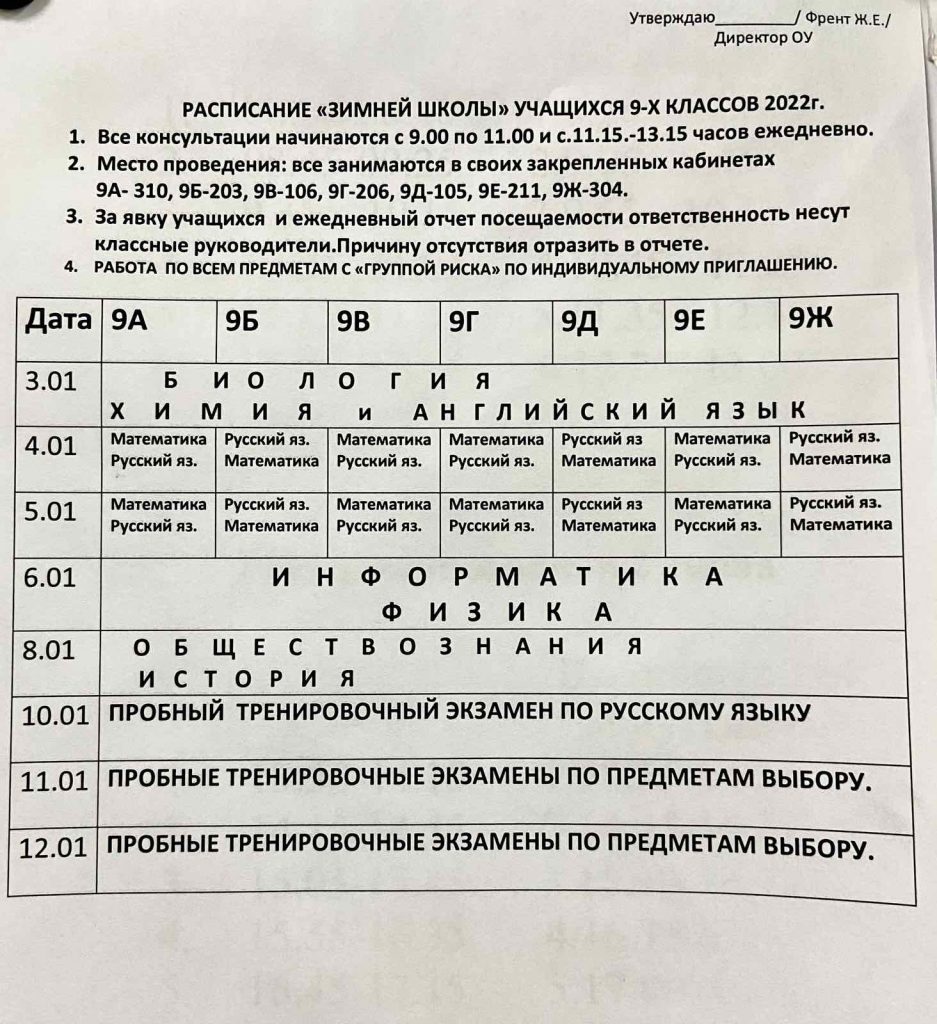 Зимняя школа по подготовке к ГИА