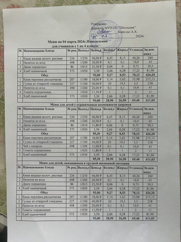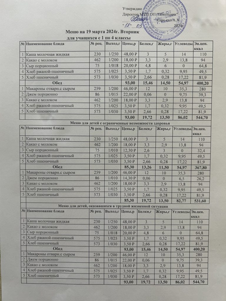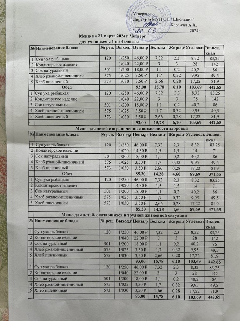 Меню на март 2024 05.03.2024 / Меню на 21 марта Меню на 19 марта Меню на 13 марта Меню на 12 марта Меню на 11 марта Меню на 6 марта Меню на 5 марта Меню на 4 марта Меню на 1 марта