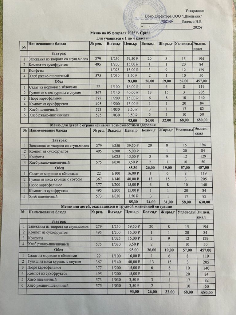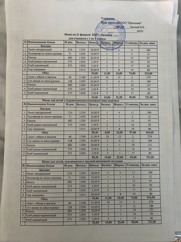 Меню на февраль 2025 25.02.2025 / Меню на 24 февраля Меню на 21 февраля Меню на 20 февраля Меню на 19 февраля Меню на 6 февраля Меню на 5 февраля