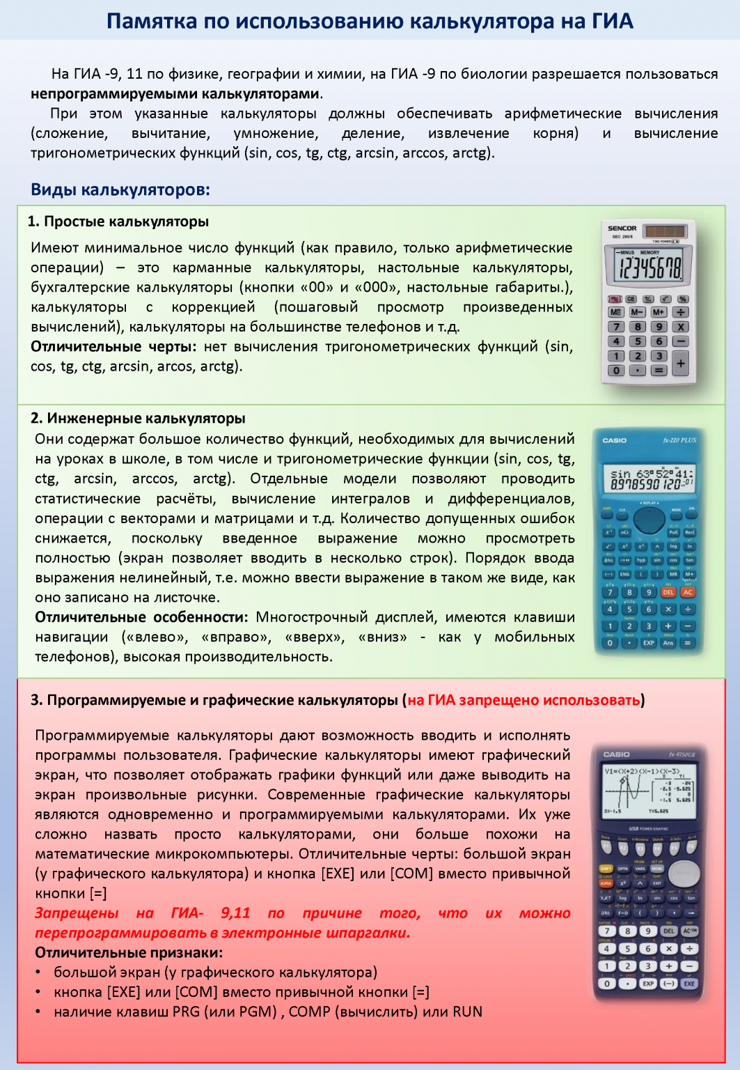 Заблаговременное ознакомление с правилами и процедурой экзамена снимет эффект неожиданности на экзамене. Тренировка в решении заданий поможет ориентироваться в разных типах заданий, рассчитывать время. С правилами заполнения бланков тоже можно ознакомиться заранее.