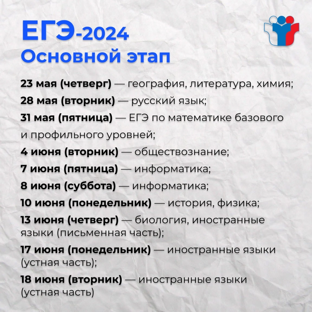 Согласно законопроекту основной государственный экзамен в 2024 году пройдет в следующие даты: