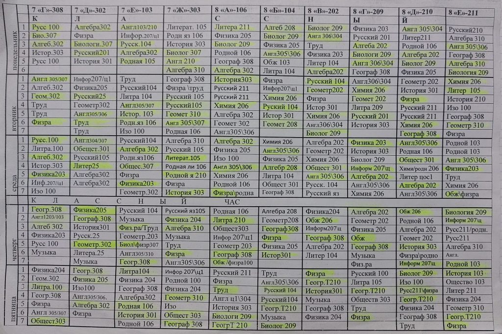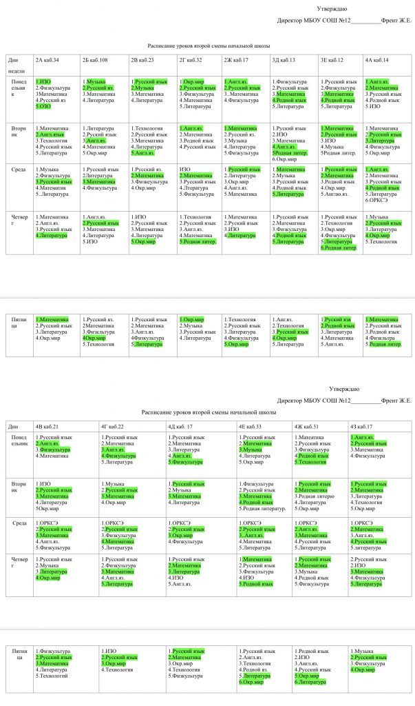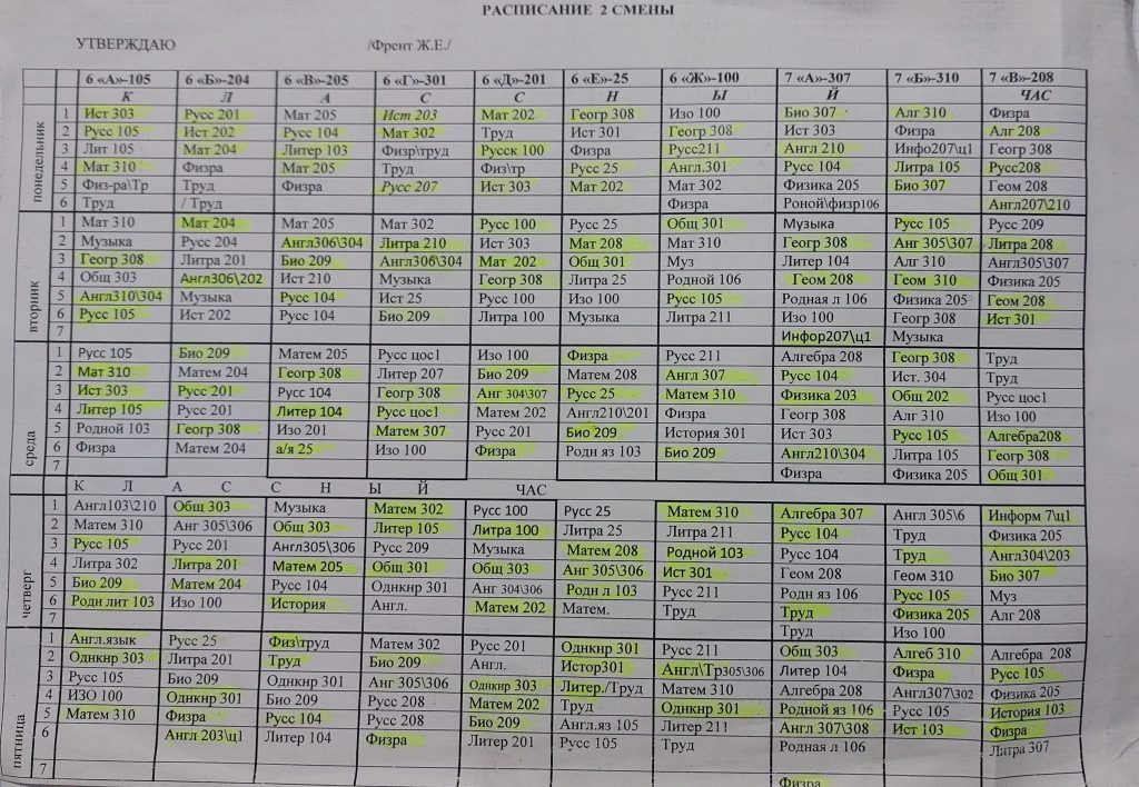Расписание уроков 2 смены во время дистанционного обучения в дни морозов