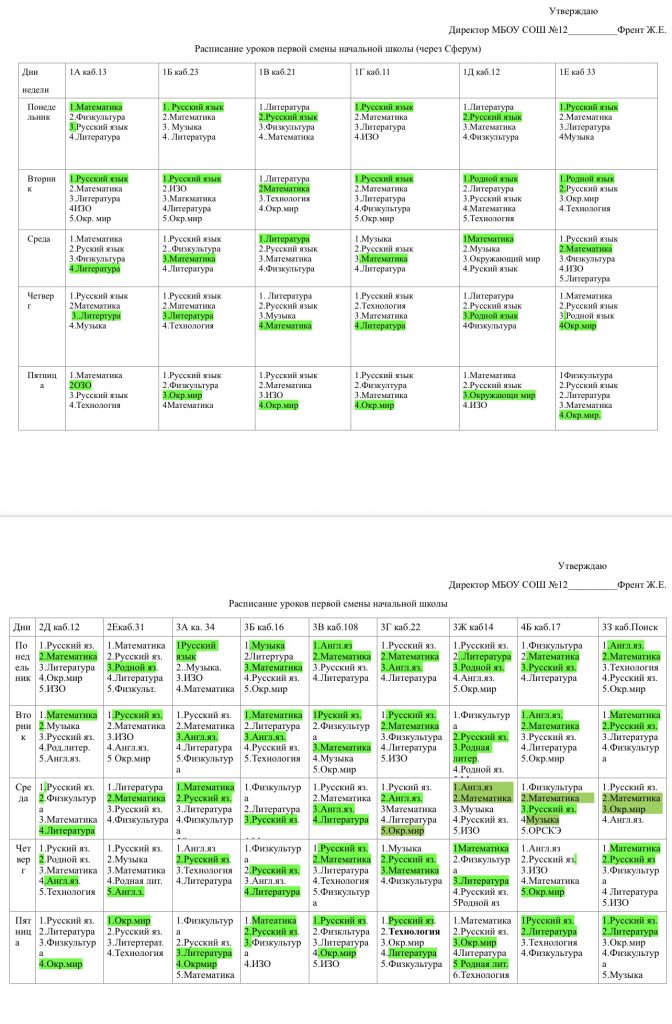 Расписание уроков 1 смены во время дистанционного обучения в дни морозов