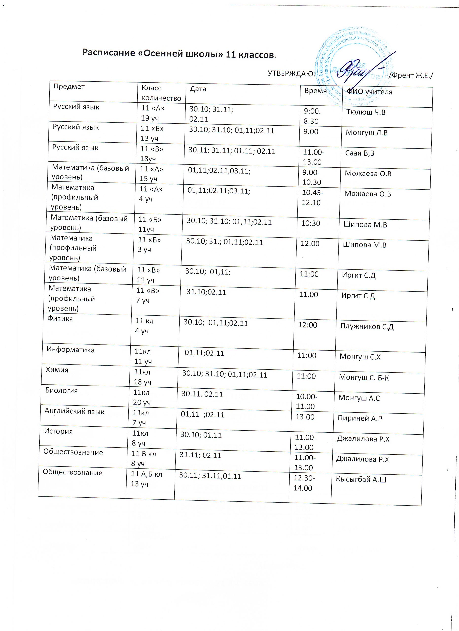 Расписание «Осенней школы» 11 классовСкачать