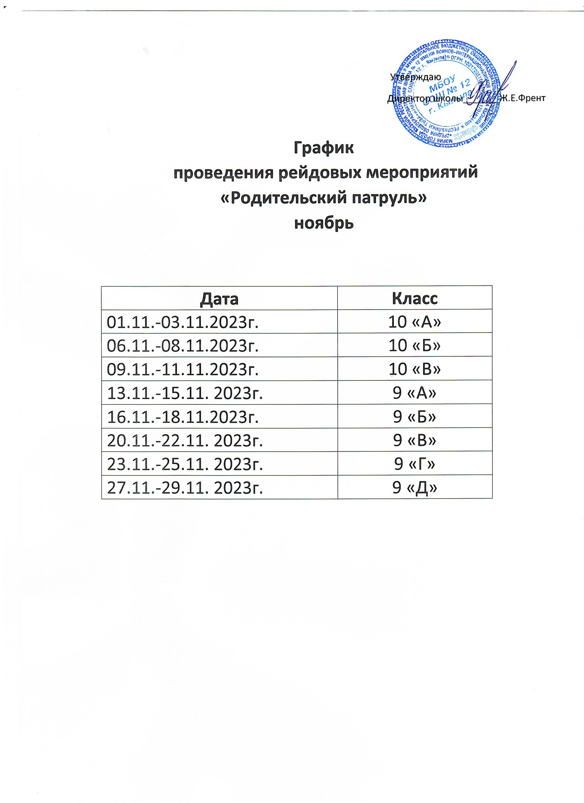 Родительский патруль — график проведения рейдовых мероприятийСкачать